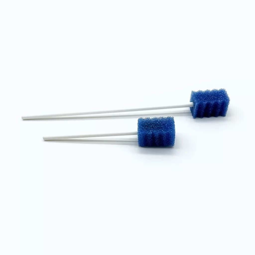 Sponge oral swab used to wipe excess gel form gum, also used to wipe teeth prior to creating teeth impression also to apply pretreatment liquid.