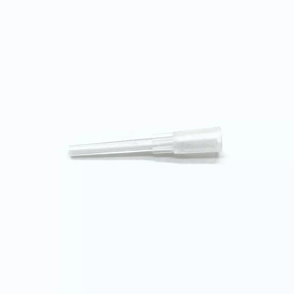 Straight clear syringe applicator tip. The applicator tip allows for more precise insertion of gel into trays. Excellent for in-office treatments.