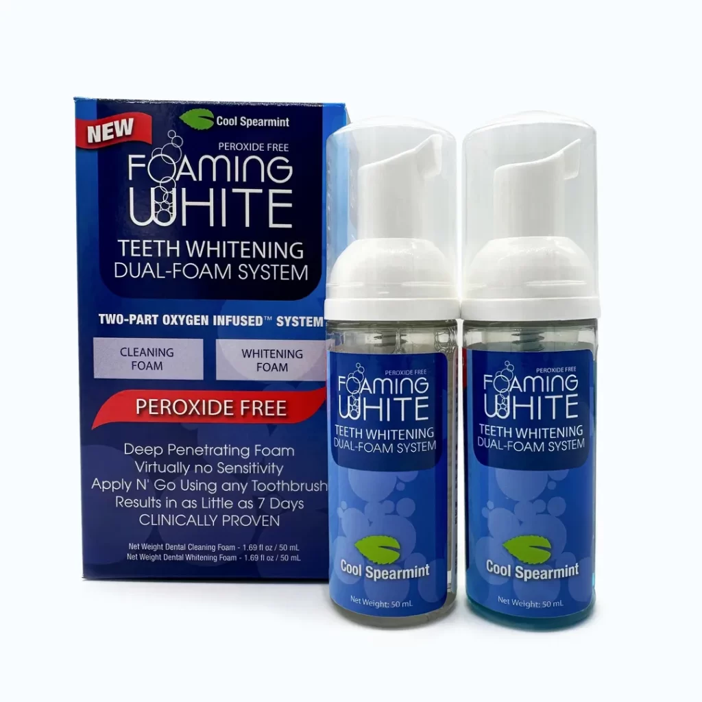Advanced, non-peroxide, oxygen-infused teeth whitening system designed to deliver gentle, powerful, longer-lasting results. The product features a revolutionary new technology that removes stains and whitens teeth safely and rapidly using a foaming formulation that penetrates better that any paste or gel. The two part system provides you with a very effective method for cleaning and whitening your teeth without the need for messy trays or difficult strips. Simply brush your teeth with this revolutionary non-peroxide foam system and experience user-friendly, pain-free white results that will leave you smiling.