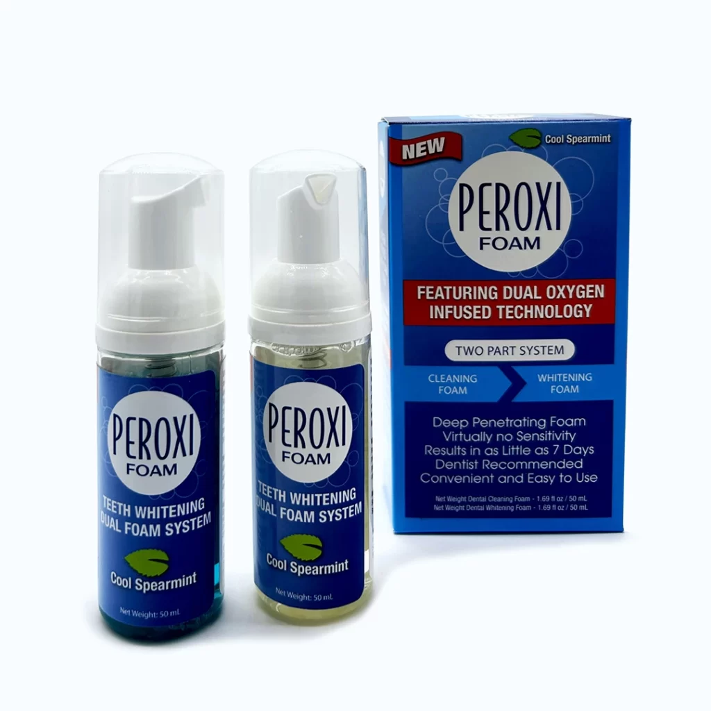 World’s first Teeth Whitening Foam. It features our patented oxygen-indused foaming F.A.C.T. technology that is designed to deliver gentle, powerful, longer-lasting results. The product features a revolutionary new technology that removes stains and whitens teeth safely and rapidly using a foaming formulation that penetrates better that any paste or gel. The two part system provides you with a very effective method for cleaning and whitening your teeth without the need for messy trays or difficult strips. Simply brush your teeth with this revolutionary hydrogen peroxide foam system and experience user-friendly, pain-free white results that will leave you smiling.
