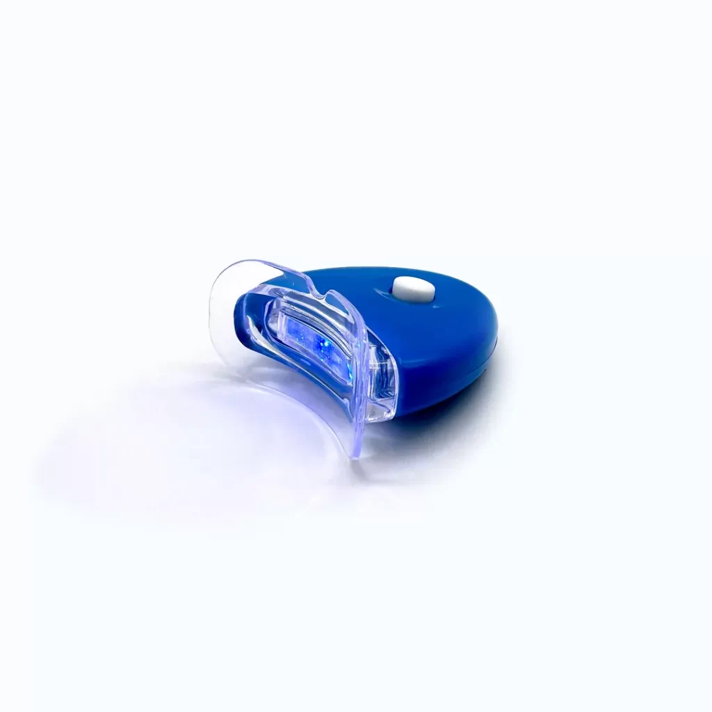 Hands-free LED light system specifically designed and manufactured for teeth whitening. Based on a blue-light system with the exact light frequency of nanometers to activate teeth whitening gel. The frequency of light is 469 nanometers.