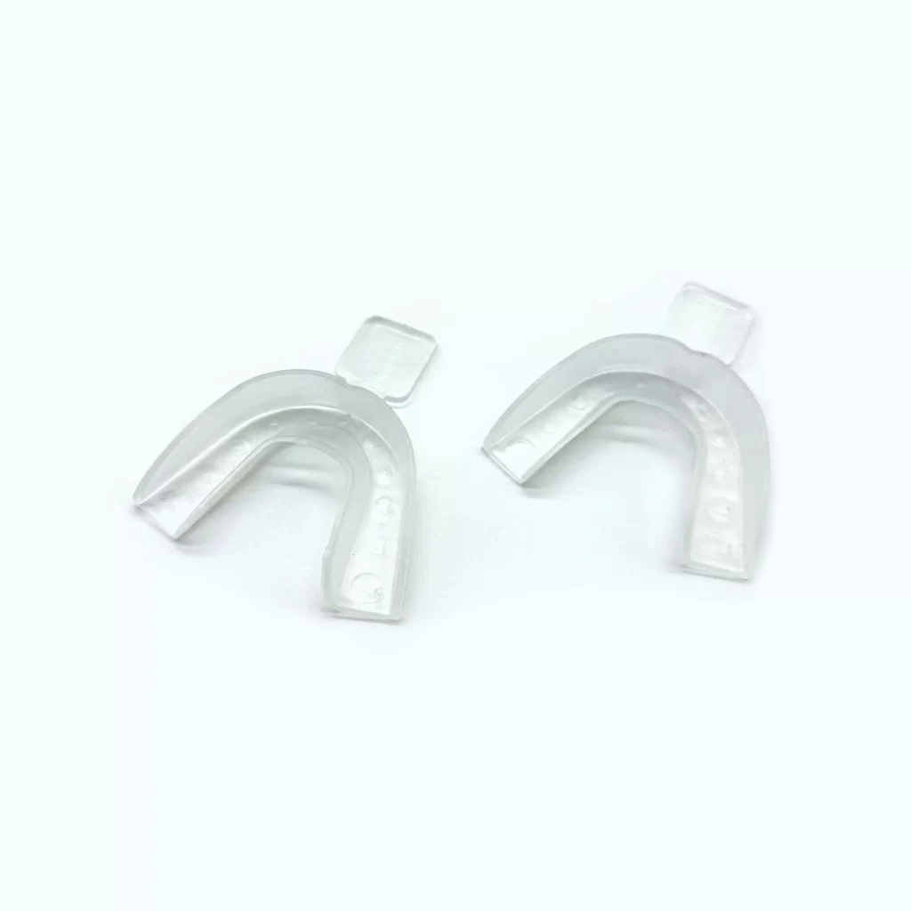 Plastic heat forming reusable mouth tray. This easy to use tray is used mainly for at home teeth whitening treatments. Trays become moldable after being exposed to hot water. 2 trays required per person (1 upper and 1 lower arch).